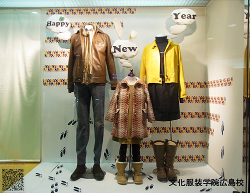 これまで2年生が中心に行ってきた広島駅地下広場のディスプレイですが、今回初めて1年生有志が主となり参加させて頂きました。2011年の新春をイメージし干支のウサギや吹き出しなどを使用し、「家族」をテーマに空間構成をしました。