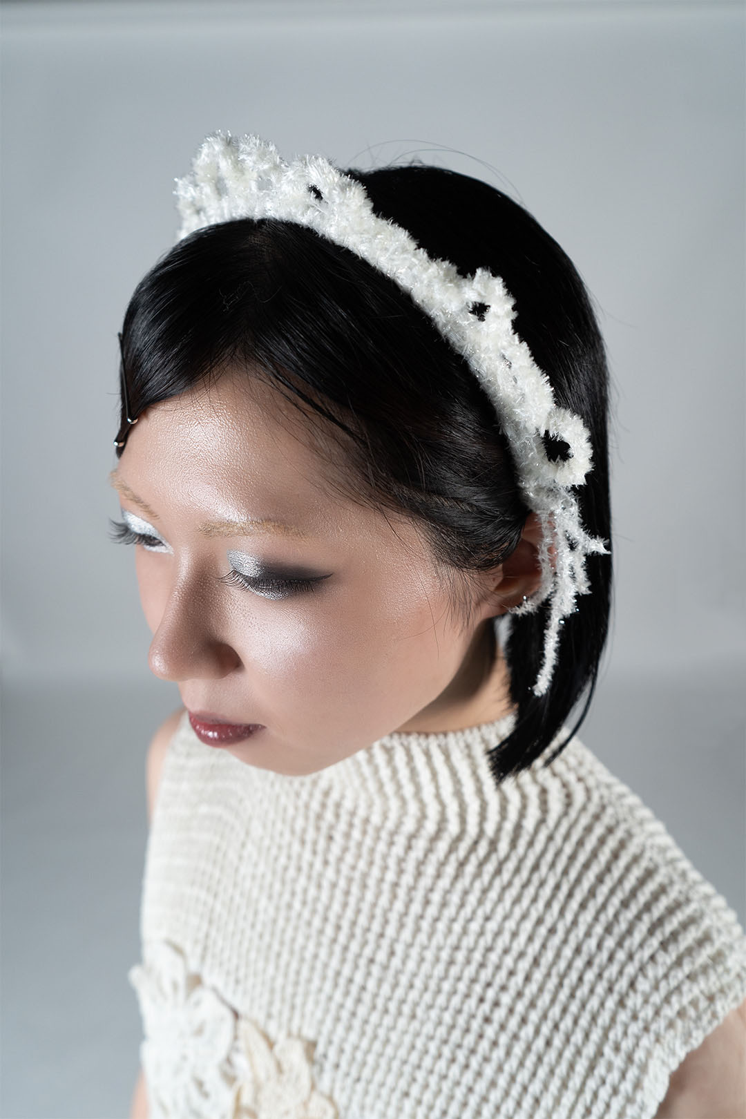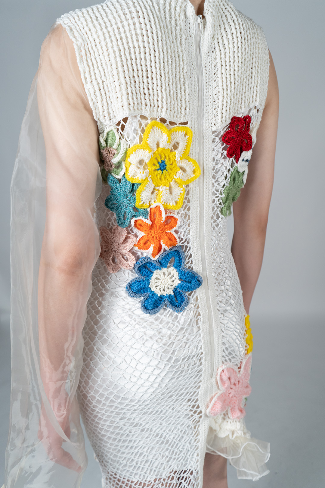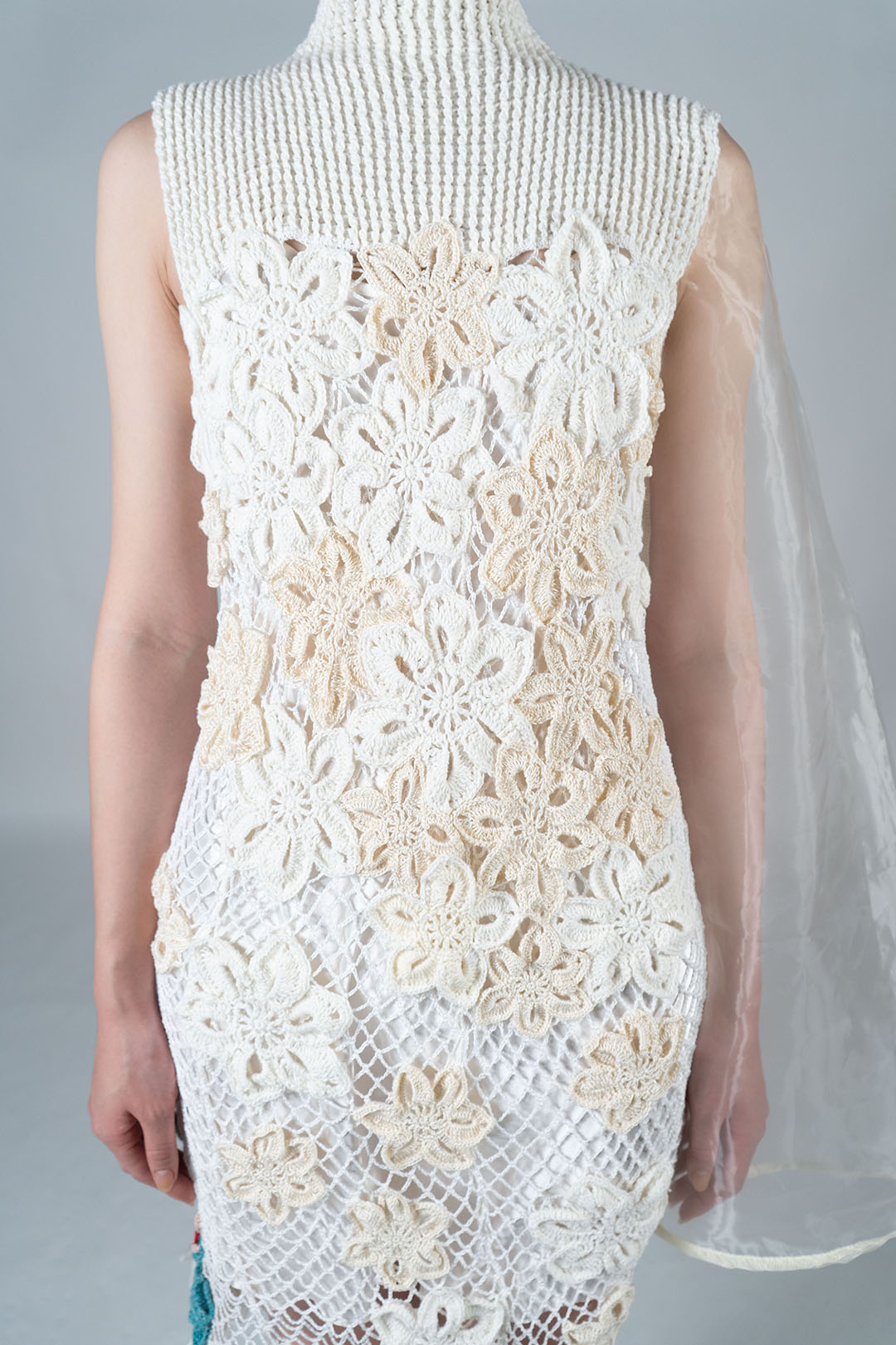 ワンピース・装飾・ヘッドドレスを全て手編みしました。