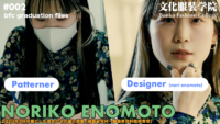 大学卒業後、文化服装学院 服飾研究科に入学。 その後、服飾専攻科技術専攻に進級し、2020年3月に卒業。 現在、企業ブランドのパタンナーと自身のブランド『nori enomoto』のデザイナーとして活躍中の榎本さんに密着!
