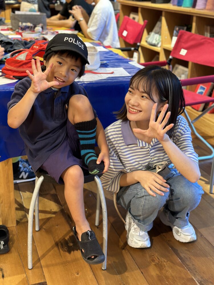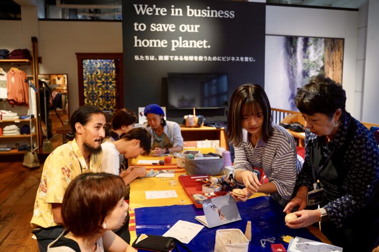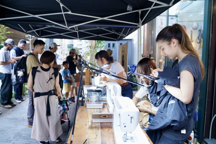 こうした活動に賛同した石川貴洋さん(服飾研究科)はNewMake会場にてセルフリぺアワークショックを、渡邉朝香さん(Ⅱ部 服装科)はパタゴニア会場にてダーニングワークショップをそれぞれサポートするなど5名の学生は普段の学びを活かして、訪れていただいた方々が大切にしていたアイテムをリペア。ファッション業界はもちろん、社会全体で考えていかなければならないSDGsに取り組みました。