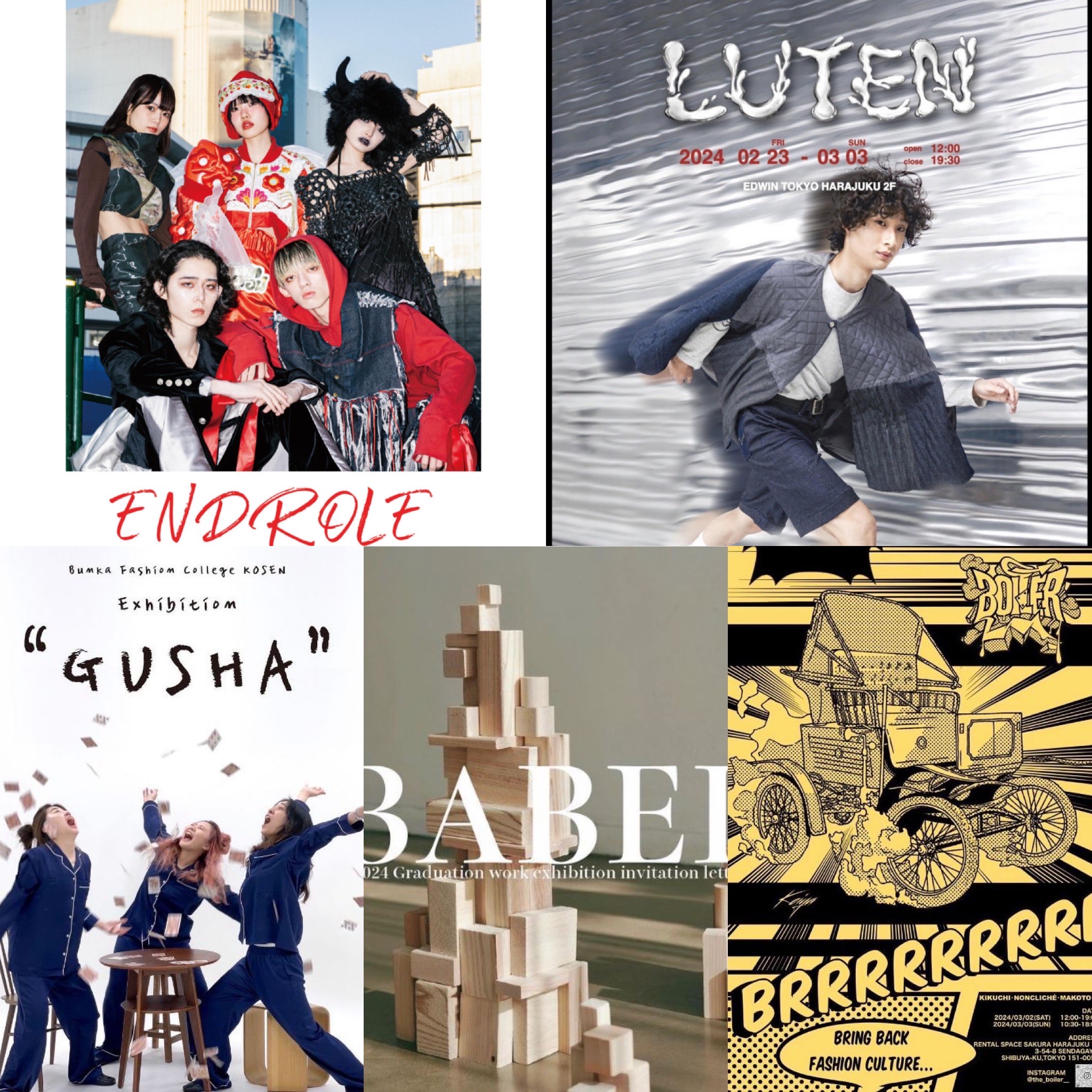 ラフォーレ原宿でのファッション流通専攻科卒業ファッションショー(詳細はこちら)、ファッション高度専門士科の3つの外部展示(詳細はこちら)、アパレルデザイン科のEDWIN HARAJUKU TOKYOでのデニムアップサイクルプロジェクト展示(詳細はこちら)。