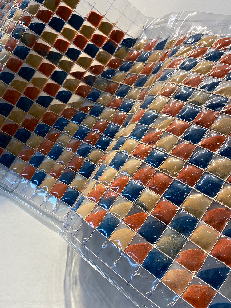 テキスタイルクリエーションです。3年通してある授業で、習得した知識と技術を使ってオリジナルテキスタイルを追求していきます。今までに見たことがないものをつくりたいと常々思っている私。この授業で様々なことにチャレンジした結果、本来生地には使わないような素材を組み合わせてつくることに自分らしさがあると気づきました。その方法で手がけた作品が「ジャパン・テキスタイル・コンテスト 2020」の学生の部で入賞。成長を感じたのと同時に自信がつきました。