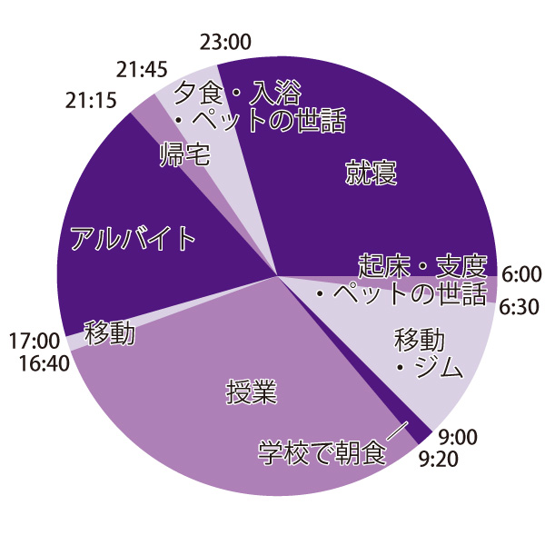 学業とアルバイトを両立させるため、ものごとを逆算してスケジュールを立て、時間を最大限有効活用することを心がけました。授業が終わり次第すぐアルバイトに向かえるように、授業内で作業を終わらせられるよう集中。常に効率よく動けるように、例えば服づくりの場合なら、縫製の順番を自己流にカスタマイズし、作業しながら片付けをするなど工夫もしました。リフレッシュも大切にしていて、すでに習慣になっているウェイトトレーニングのほか、トカゲ、カエル、ザリガニ、メダカなどペットの世話が癒やしになっています。