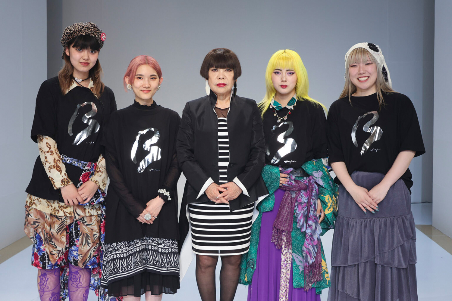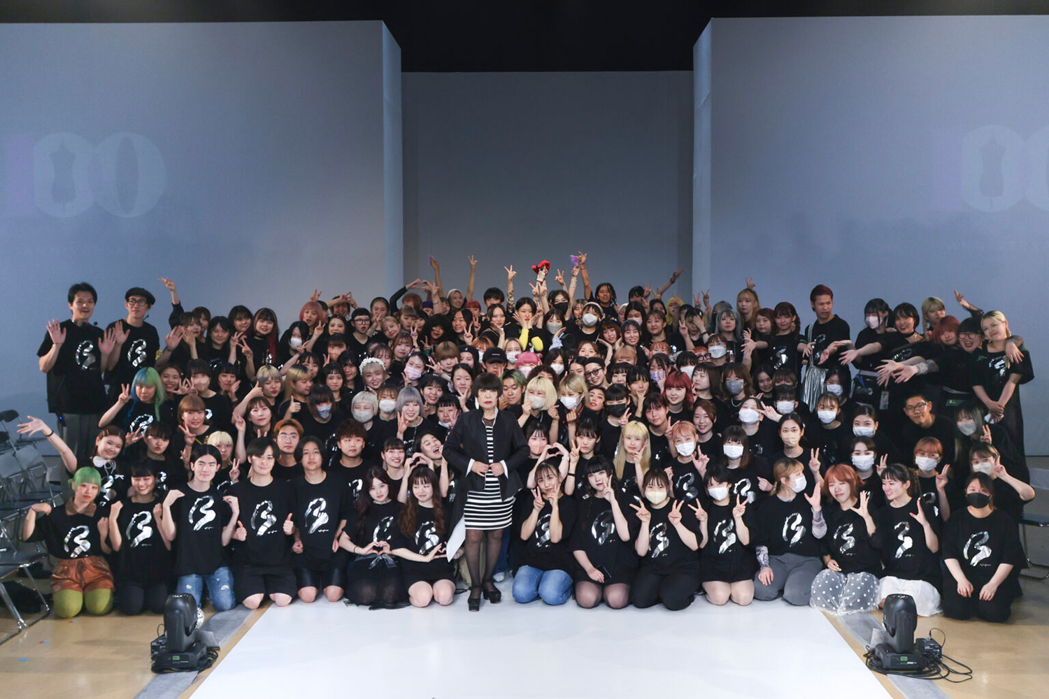 100周年記念ファッションショーのスタッフTシャツデザインを卒業生のデザイナー コシノジュンコさんが担当下さいました。