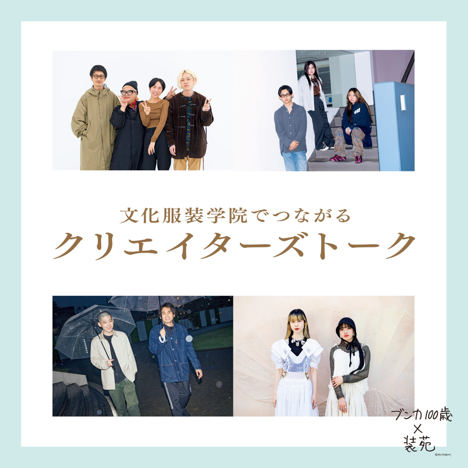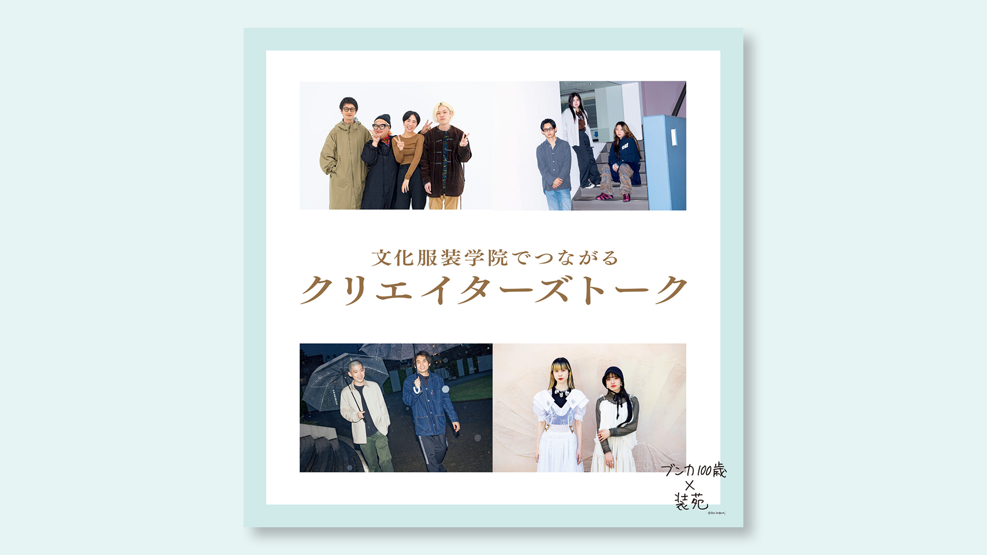 第5弾は文化服装学院で出会ってから、現在まで互いの存在が刺激となっている「同級生&同世代」の各年代のクリエイターたちの座談会と対談をお届けします。宝物のような出会いを果たした4組の尽きない話から、文化という場所の面白さを感じ取って!