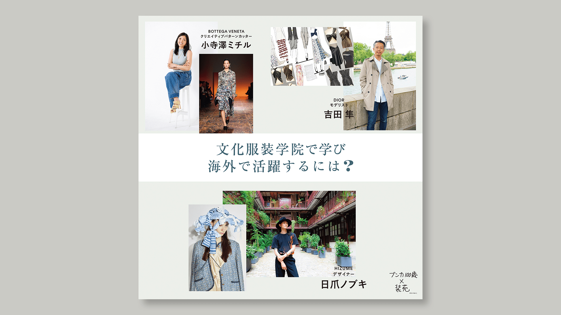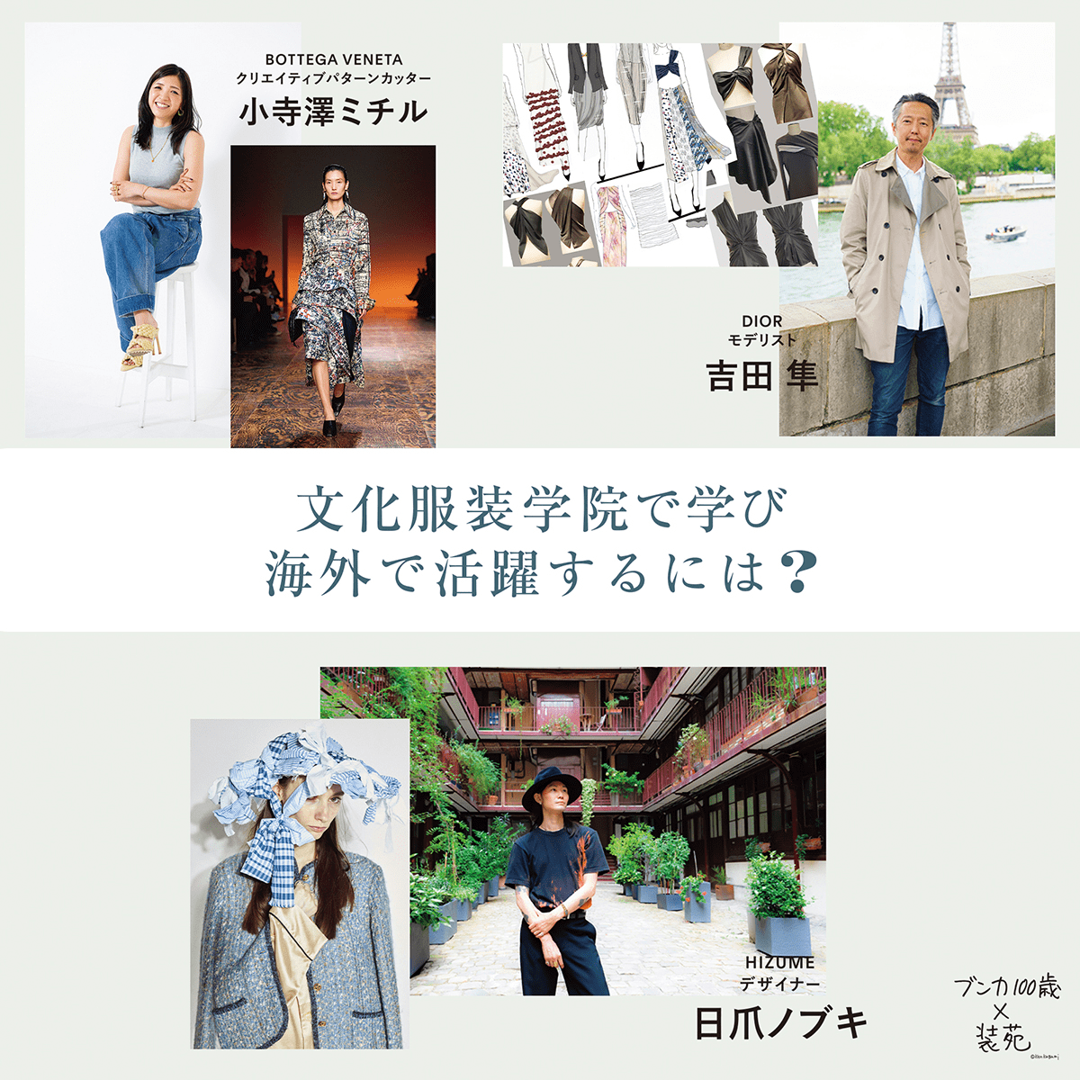 2023年、創立100周年を迎えた文化服装学院。文化の100歳をお祝いした好評連載の12回目(最終回)は、文化服装学院で学んだスキルを生かし、海外のメゾンで活躍する卒業生へのインタビュー。海外で文化服装学院卒業生の技術力は高く評価され、メゾンやコレクションブランドで活躍している卒業生は多数。また、海外で自身のブランドを展開している人も。ファッションの本場、ヨーロッパで自らの才能を輝かせる方法は?