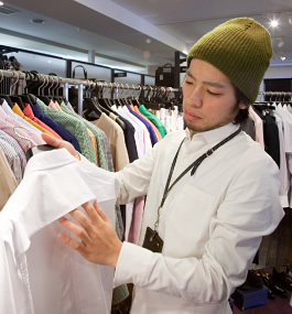 “TAKEO KIKUCHI” 商品開発 長谷川 陽介 1983年生れ。埼玉県出身。2005年アパレルデザイン科メンズコース卒業。株式会社ワールドへ入社。メンズ事業部“TAKEO KIKUCHI”の商品開発を担当する。百貨店などの店舗に対応する商品を主に担当する企画・開発として活躍中。カジュアルなアイテムを中心に、布帛・カットソーなどを手掛ける。