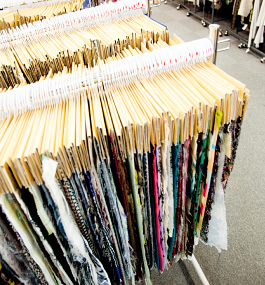 ドゥースリーの営業はチーム制ではなく、担当者が“個人商店”のように受注から納品までをひとりで請け負う。そのためトラブル時も状況を自分で判断し、対処しなければならない。「かなりプレッシャーを感じます」と言う亀井さんだが、生地見本ができあがった瞬間は日々の苦労を忘れられるひととき。「プリント図案はまず紙の上に起こすのですが、それが生地に乗ると感じがまた違ってきます。プリントがイメージ通りにできているかどうか緊張する瞬間でもありますが、実際の生地を見るとやっぱり嬉しくなります。そして、出来上がった生地をお客様に気に入っていただけたら本当に最高ですね」