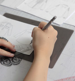 服飾専攻科の授業でもパターンを引いてきた張さんですが、OEMのパタンナーの仕事を手がけるようになって基本の大切さを実感していると言います。「ブランドからデザインの指示書をもらい、その指示書に従ってパターンを起こして、ファーストサンプル、セカンドサンプルを作り、デザイナーに確認してもらいながら、その都度修正を加えていきます。量産されるものなので、数ミリのずれでも洋服の仕上がりに影響してしまうため、より正確さが求められます。1、2年生のときに授業で習ったスカートのベンツの縫い代のつけかたや、ジャケットの芯を貼る部分など、一番の基本が今、生かされています」