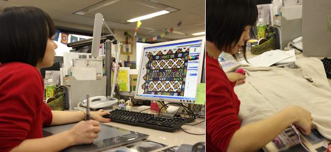 仕事内容としては、前シーズンの反省から始まり、今季の案をデザイナーたちで出し合う。柄から作ることもあるそうで、各国の民族衣装の柄をアレンジしたりすることも。そしてファブリックの指示書を作成し、服のパターンも作っている。生地とスタイルの指示書の作成が終わったら、海外へ出張。インドなど現地の工場へ行って視察。送った指示書をもとに仕上がり具合を見て、修正の指示をかけて帰国。その後送られてきたサンプルを検品、試着して補正をかけ、仕上がったものが展示会へ。その後最終指示書を作成し、出来上がってきた商品を検品。その商品の売り上げの統計を取り、来シーズンの商品に繋がっていくというのが一連の流れだ。「エスニックなので夏をメインに展開していて、年に3回展示会があるんです。なので普通のアパレル企業よりは仕込む量は多いかもしれませんね」