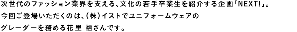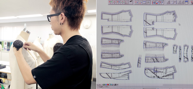 オフィスから飲食店、パーラー、アミューズメントパークまで様々な職業のユニフォームウェアを展開しているイスト。そこでグレーダーとして勤務している花里さんは、大学に通いながら二部服装科に通っていた。そこで3年間学んだ後に技術専攻科へ編入したという経緯だ。「地元が上野ということもあって服に興味はあったんですけど、高校が付属だったのでそのまま大学へ進学したんです。大学では考古学を専攻していたけれど仕事にはできないと思い、大学2年の時に文化の二部に入学しました」。そして技術専攻科を卒業後はオンワード樫山に入社。そこからグレーダーとしての職務をスタートし、オンワードで4年勤めた後に現在のイストへ転職した。