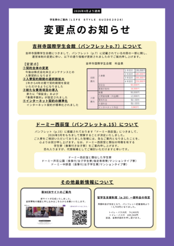 寮・住まいについての最新情報の詳細は入学案内書同封の