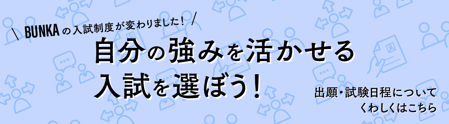 文化服装学院の入試方法は、「総合型選抜入試(AO入試)」「指定校推薦入試」