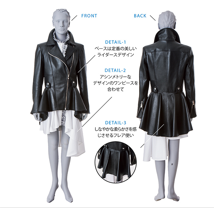 平面と立体の両方からパターンメーキング力を養います。1年次での総合的な知識と技術を発展させ、工業パターンへの展開、的確なグレーディング、素材や仕様を考慮した縫製テクニックなどを身につけます。同時に、サンプルメーキングと量産技術実習を行い、既製服生産の体系と実務を体験。生産合理性や品質確保などの諸要素についても学びます。さらに、商品企画から生産に至る流れをさまざまな視点から認識する科目も履修します。