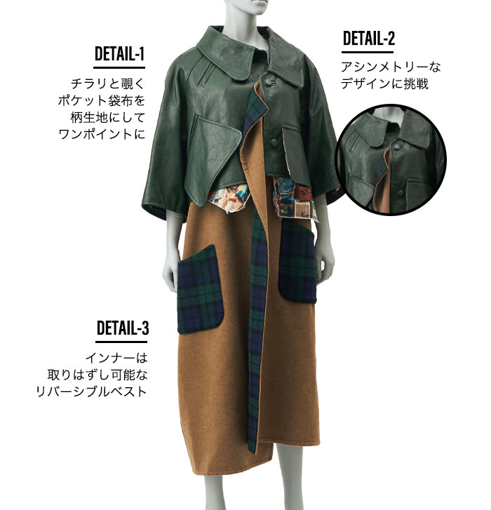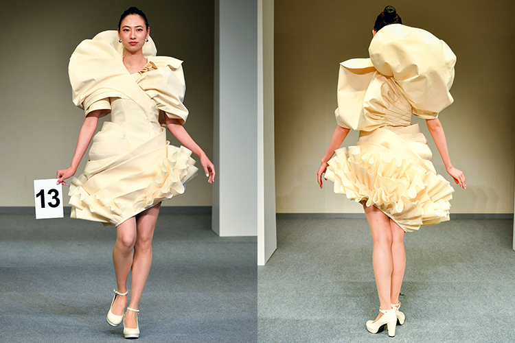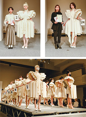 3年生の選択科目・工場生産研究の授業でsulvamの過去作品を縫製したことを機に、デザイナー藤田哲平氏(Ⅱ部服装科卒業)と縫製工場とのコラボレーションが実現しました。有志6名はショーピース3体の工場での制作現場に参加。個人作品と違い、商品を生産する難しさを改めて学ぶ貴重な体験に。この取り組みは楽天支援の下、実施したbyRのプロジェクトを通じて、WWDJAPANほか、多数のメディアへ発信されました。