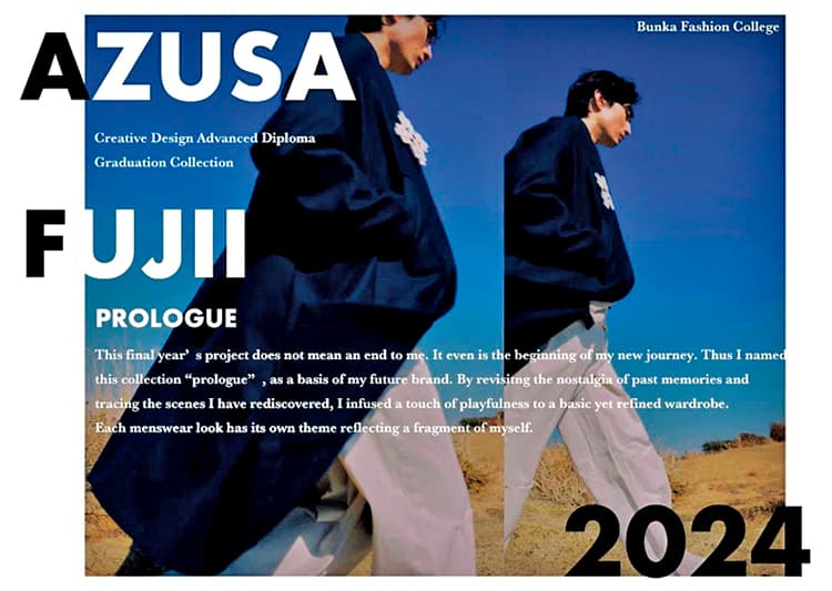 2024年6月に、イギリスのロンドンで開催されたファッション系大学の卒業イベント「Graduate Fashion Week 2024」のインターナショナル部門で、ファッション高度専門科卒業生、藤井安寿星さんがポートフォリオアワードを受賞しました。自身が受けてきた刺激や経験を基に制作したというポートフォリオはまさに4年間の積み重ね。さらなる活躍が期待されています。