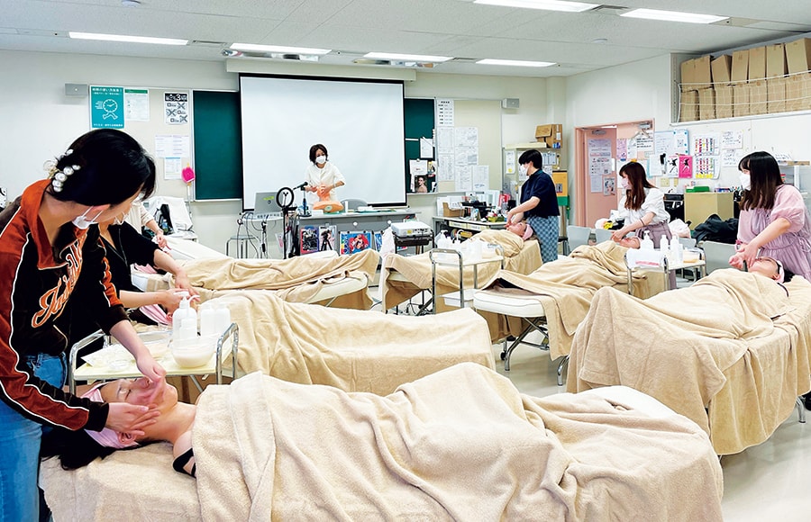 顔をキャンバスに見立て、メイクによる幅広い表現を身につけます。イメージメイクやショーメイク、特殊メイク、年代別メイク、キャラクターメイク、ブライダルメイクなど、さまざまな技術と知識を身につけます。