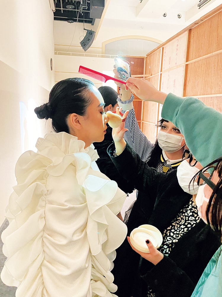 企業コラボレーションや学内イベント、モデル着装によるコンテスト審査会などの実践を通して、要求されるシチュエーションやシーンに合わせたメイクアップ技術を学びます。