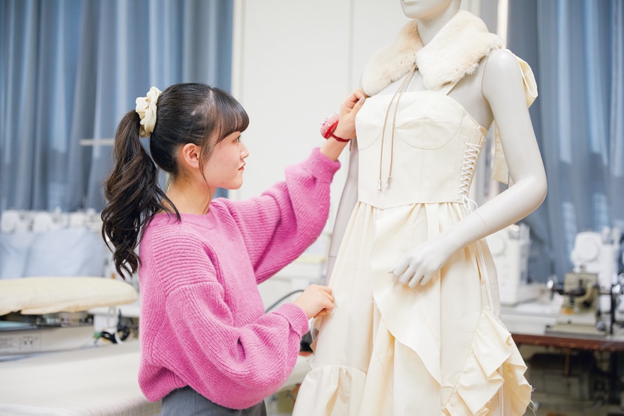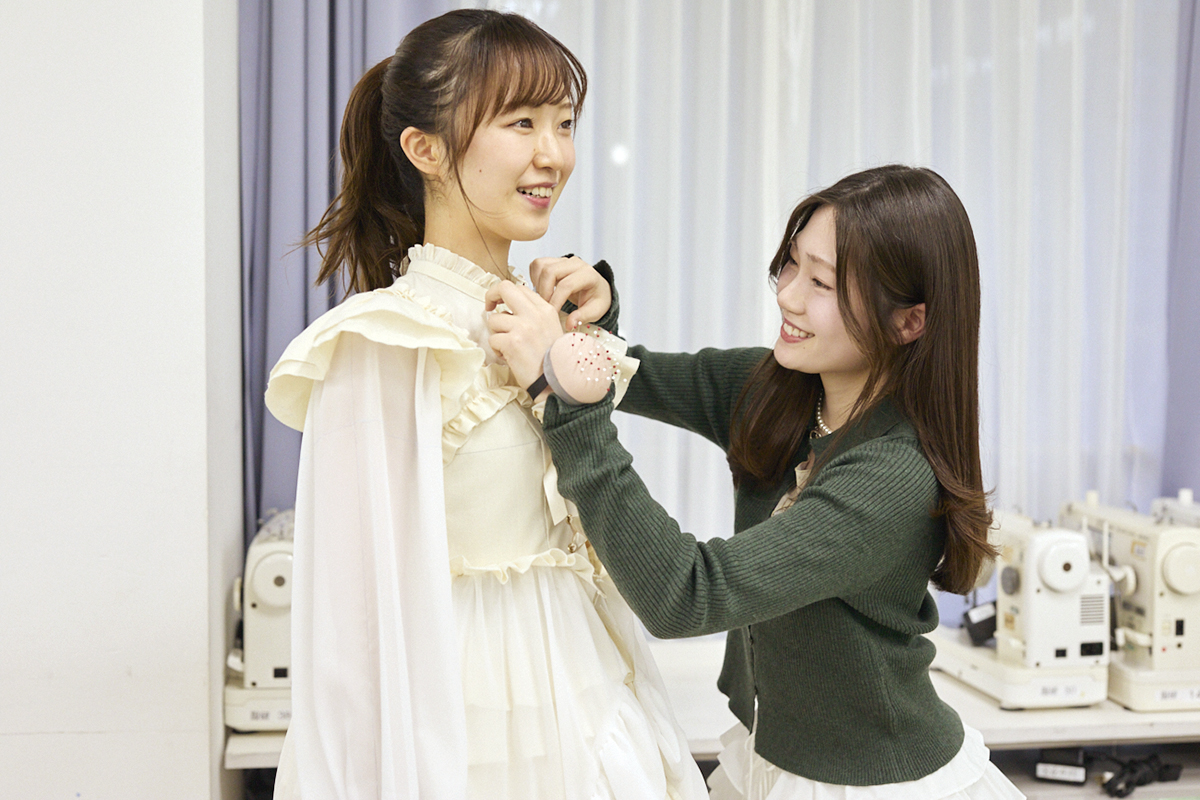服装科は、2年間を通して服づくりをじっくりと学べるカリキュラム。