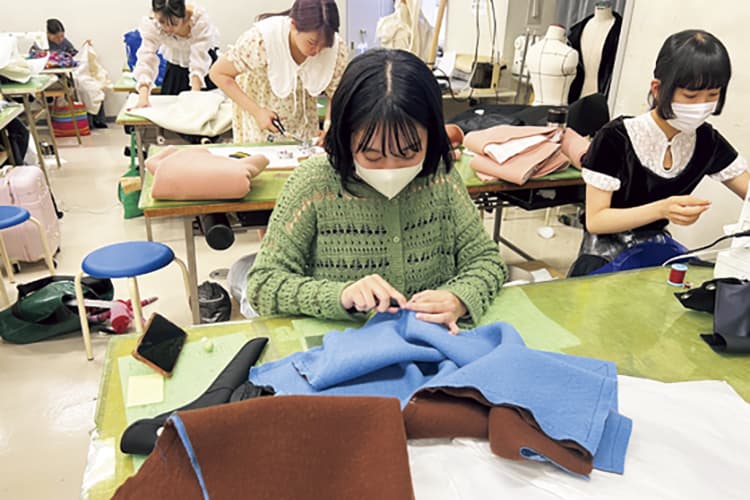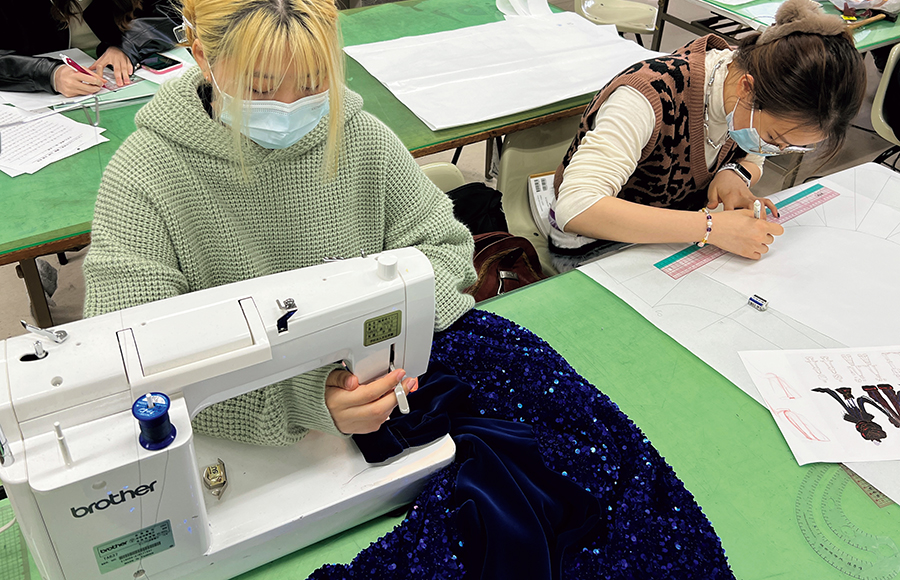 ドレーピング、パターンメーキング、縫製など専門的な技術を習得し、各アイテムを制作。特殊素材、フォーマル素材など、デザインに適した素材の特性をいかしながらイメージを具現化させていきます。