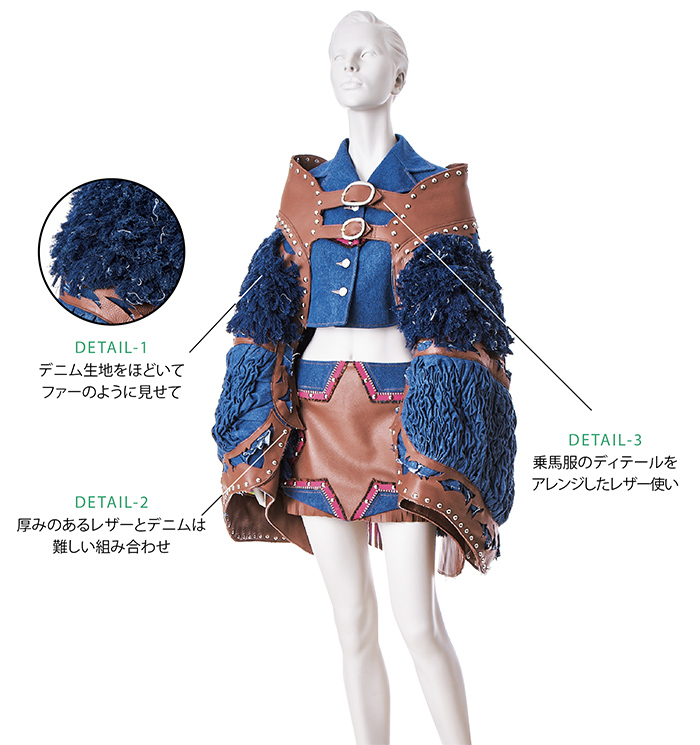 皮革、毛皮などの高級素材で作品を制作。課題制作を通して、企画・設計・生産といったアパレル生産プロセスを学び、高度な知識と技術を習得します。