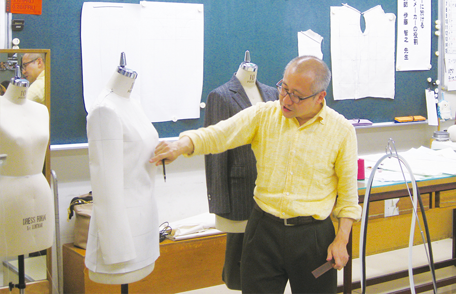 現役のパタンナーやモデリストを講師に招いた特別講義も。天然芯を使用した八刺し仕立てのジャケットテクニックや企業での方法論など、アパレルの技術を学びます。