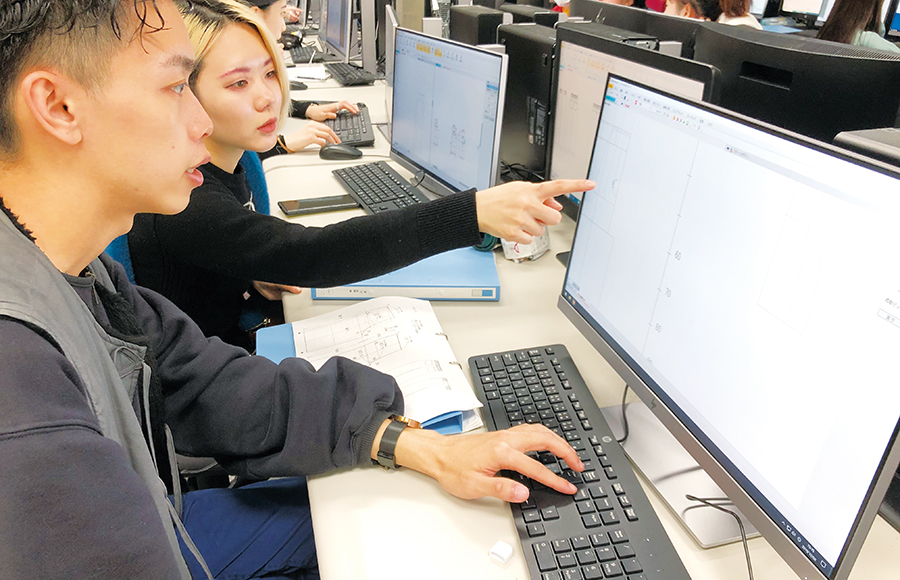 アパレル業界の企画設計に必須なCADシステムによるパターンメーキングを習得。考え方、手法、方法、管理の理解を深め、CADのオペレーションを体得します。