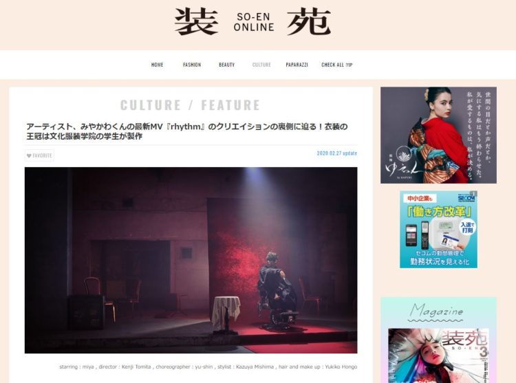 文化服装学院 帽子・ジュエリーデザイン科の大澤彩乃さんが 人気アーティストみやかわくんの最新MV『rhythm』衣装の王冠を制作しました。下記の装苑オンラインでその様子が掲載されています。ぜひご覧ください。