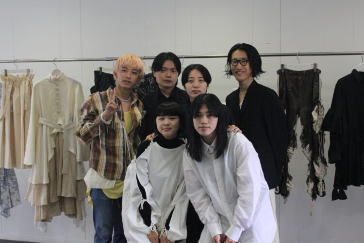 橋本さんをはじめ、アパレル技術科2年のイヒョンソクさん、ファッション高度専門士科2年の大阿久晃輝さん、アパレルデザイン科2年の荻野優花さんが参加。また橋本さん作品のパターンをアパレル技術科2年の中村彩香さんが担当。