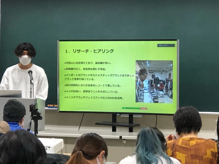 ファッション流通高度専門士科の1年生が、東京・代官山にあるセレクトショップ「Good LIFE STORE」とのコラボレーションに挑戦。同ショップのノベルティグッズを企画し、実際に顧客へと配布するまでを目指すプレゼンテーションが10月6日(水)に開催されました。