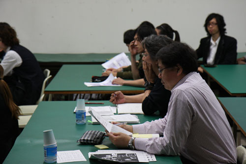 イトキンの審査員↓ 学生達は少しピリピリムード