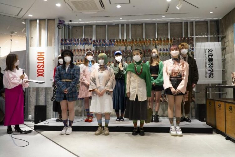 11月9日(水)にはラフォーレ原宿にて記者発表会が開催され、レンフロ・ジャパン日本支社の高橋良太社長とともに、PRを担当するファッションプロモーションコースの学生が参加しました。ゲストに文化女子大学短期大学部服装学科を卒業したデザイナー/アーティストの篠原ともえさんが登場し、HOTSOXやレンフロ・ジャパンの取り組みに対する思いや、学生たちにエールをいただきました。