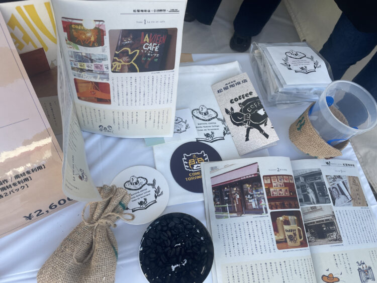 また、このブランドブックに加えて、松屋珈琲で廃材として出たコーヒー豆の麻袋をアップサイクルしてカップホルダー等の作成やコラボレーションのロゴをプリントしたケースに入れて、松屋珈琲のコーヒー豆とともに 11 月 6 日(日)の東京都港区の「ふれ愛まつり」で販売しました。