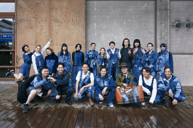 2021年からスタートした産地型サーキュラーエコノミー「REKROW」とインダストリアルマーチャンダイジング科のコラボレーション企画で、今年はインダストリアルマーチャンダイジング科とバッグデザイン科の学生が、REKROWが回収した造船所のデニムのワークウェアを使用し、役目を終えたあとの使い方までを想定し商品を制作。