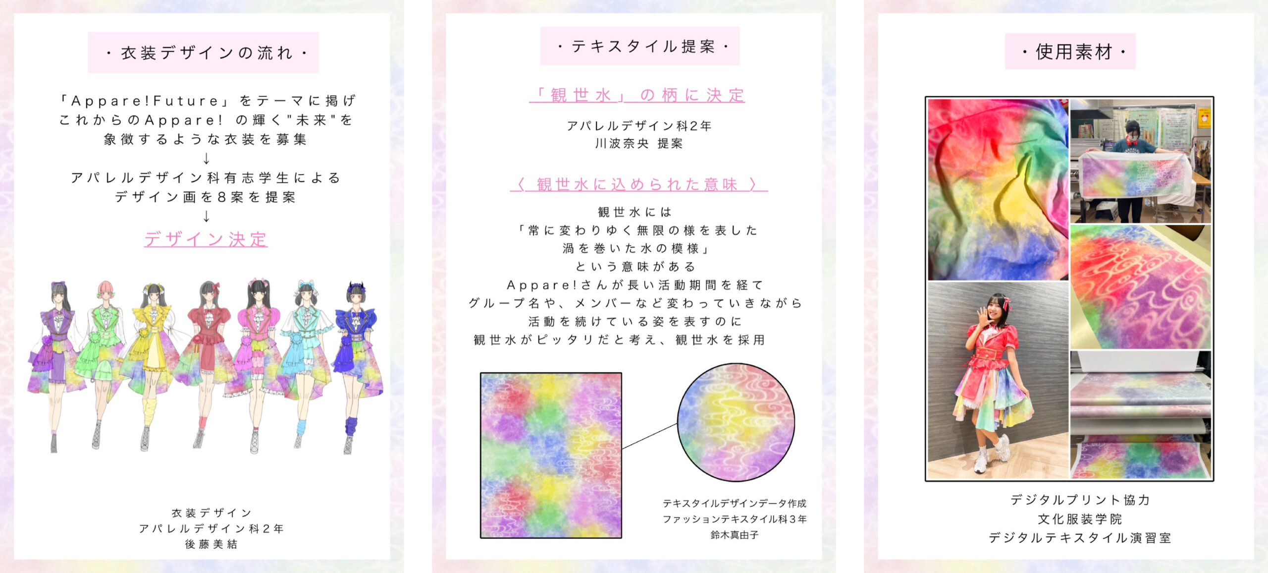 アイドルグループ「Appare!」の衣装をアパレルデザイン科の学生が制作!コラボライブにて披露!
