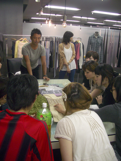 また、制作の一環として、必要な反物や資材の発注を行う一方、A-GIRL’Sの関係企業である丸枡染色株式会社・株式会社大染・有限会社フルカワ様の工場見学を通し、生地づくりや染色・加工の工程なども学ぶことが出来ました。