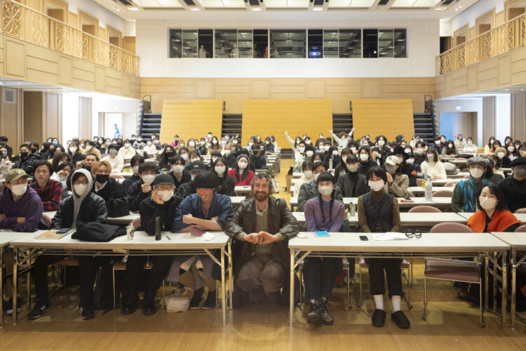 また、1月25日(水)にはショーに合わせて来日していたマルニのクリエイティブ・ディレクター フランチェスコ・リッソ氏による文化服装学院生限定 特別講義も開催。多忙な合間を縫っての来校にも関わらず、自身の学生時代のことやクリエーションについて、また学生の質問や悩みにじっくりと時間をかけて答えてくださったことに、出席した学生は一様に感動。最後には全員で記念撮影も行うなど、トップブランドのクリエイティブ・ディレクターとの交流を深めました。