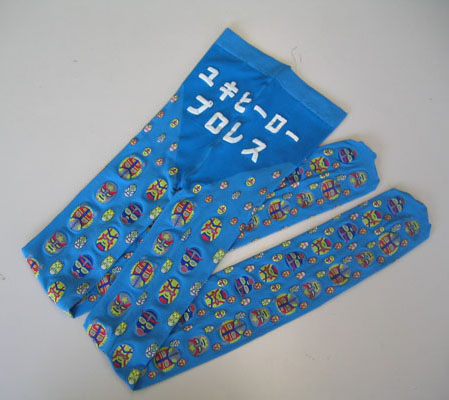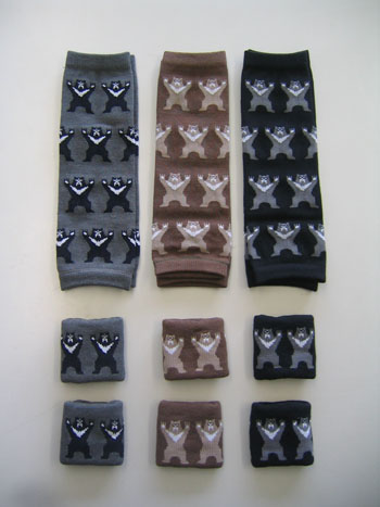 また、プロレス柄タイツにコーディネートするツキノワグマ柄アームカバー・リストバンドについても、柄図をもとにアツギ東北むつ事業所に製作を協力頂いた。