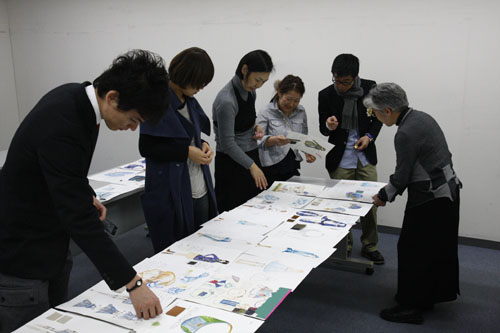 昨年、11月初旬に全学科の学生を対象に応募説明会を実施。伊勢丹のバイヤーの方より、企画の主旨や内容の説明があり約200人もの学生が参加しました。その後、参加希望者はデザイン画を応募し、伊勢丹の関係者や装苑編集部による審査の結果、全33チーム・38名の通過者が決定。商品化に向けて制作をスタートしました。