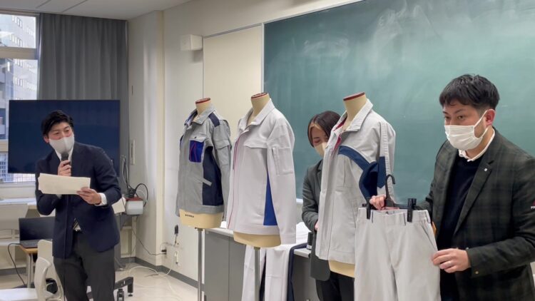 この特別ゼミは、創業120周年を迎えた大崎建設株式会社、ミドリ安全株式会社の衣料品部門を担うエムシーアパレル株式会社、文化服装学院の三者共同で実施。ワークウェアに興味を持っている学生有志が集結し、学びを深めました。