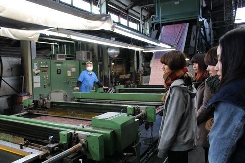 入賞学生は静岡県・日本形染株式会社に招待頂き、布に自分のデザインがプリントされる様子を見学しました。