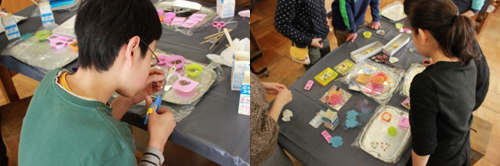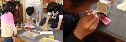 3月10日(月)、文化服装学院の教員と学生7名が、東京都・葛飾区立白鳥小学校にうかがい、同小学校の5年生のみなさんと配財を利用したワークショップを行いました。