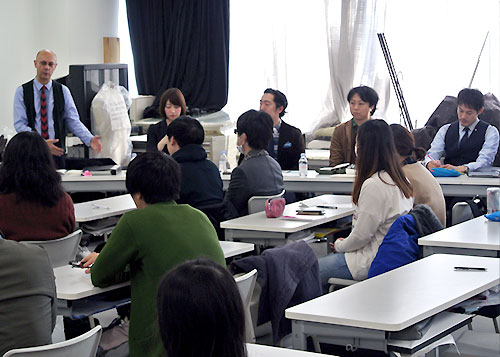 ▽アパレルデザイン科メンズデザインコースの講義室にて、