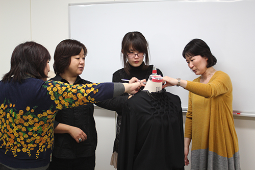 ●通過者5名は東京ソワール本社にて、トワルチェックや縫製チェックなど実社会で活躍するデザイナー、パタンナーの方々による指導を頂き、作品を完成させました。