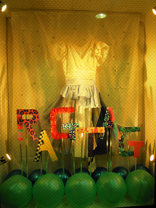 本企画は『RAGTAG』(渋谷・神戸)、『rt』(銀座・名古屋)の4店舗のウィンドウディスプレイを指定されたテーマ及び予算内で企画を立て、コンペティション形式でプレゼンを行い、採用された企画に関しては実際に店舗に赴き、学生達自らディスプレイを行うというもの。リテールプラニングコースではビジュアルマーチャンダイジング(VMD)の授業を行っており、今回の企画は実際の店舗で一般のお客様に見て頂く実践的な場を経験する貴重な機会となりました。