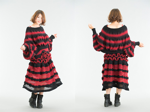 プリーツ編みを何段も重ね、普段着としても使えますが、