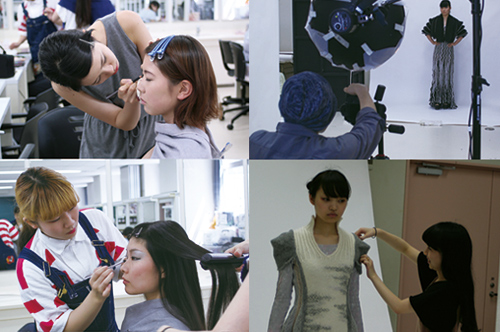 完成した作品は、ファッション流通科2年の有志学生及び講師の尾島先生よりご協力を頂き、作品撮影を行いました。