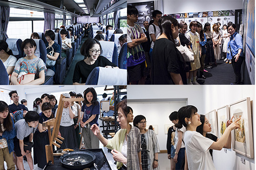 7月 岡谷市にテキスタイル科全学生を招待頂き、蚕糸博物館、イルフ童画館を見学