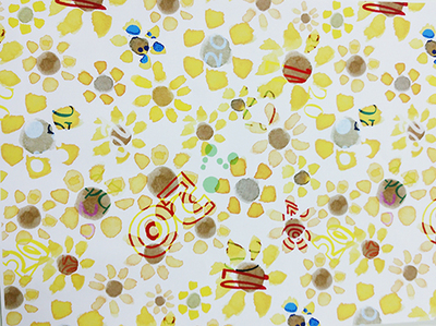 ひまわりの花言葉は「憧れ」です。自分が10代の頃「20歳」という歳に憧れとワクワクを抱いていた様に、このテキスタイルを着る人がワクワクしたり、20歳の時の自分を思い出し、楽しくなったり、このテキスタイルを街で見た人が、その服に「T.T.WOO」に憧れを抱いてくれたら、という思いでデザインしました。