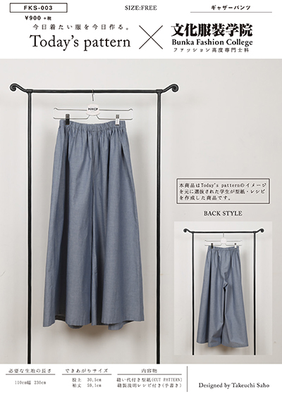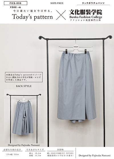 おしゃれなセレクトショップに置いてあるような洋服が、初心者でも簡単に作れるよう丁寧なレシピと切り離せるカットパターンの販売を行っているハンドメイド・カンパニー株式会社とファッション高度専門士科がコラボレーション企画を実施しました。人気商品のToday’s patternのイメージを元に選抜された学生がデザイン~型紙・レシピを作成し、トレンドを意識した学生ならではコラボレーション商品を開発。共同開発した型紙が5月初旬より同社オンラインサイトで販売がスタートしました。